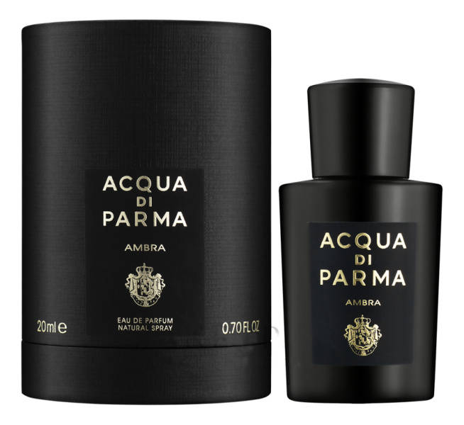 Ambra Eau de Parfum от Acqua di Parma аромат относится к группе древесные фужерные, создан в 2019 году. Состав парфюмерной композиций бергамот, петитгрейн, апельсинпачули, роза, белый кедр, нагармотамускус, ваниль, амбра, сандал. Парфюмер создавший данную композицию