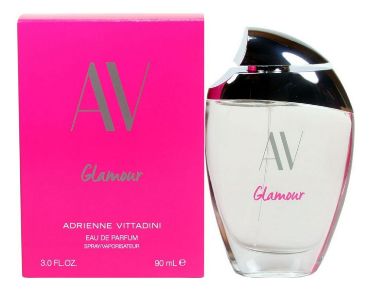 Adrienne Vittadini - AV Glamour адаптированная под новейшие парфюмерные тенденции композиция, адресованная более юной целевой аудитории. Розовый цвет в оформлении упаковки парфюма намекает на его гламурный стиль.