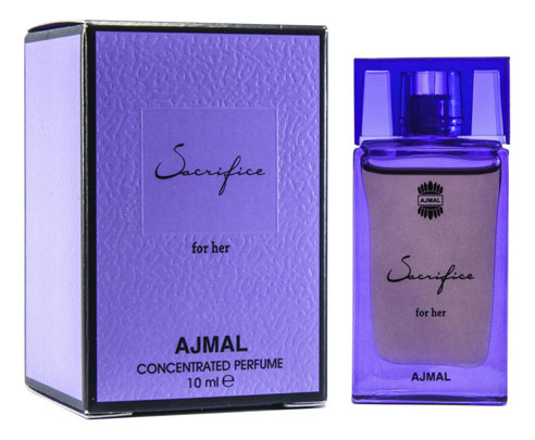 Ajmal Sacrifice for her (Аджмал Сэкрифейс фо Хё). Аромат Sacrifice был выпущен, как идеальный дуэт, посвященный влюбленный парам и всем, кто сохранил романтичную нотку в своих отношениях. Дуэт Sacrifice обращается к ним и говорит, что нет ничего важнее любви и взаимопонимания между людьми. Sacrifice for Her – это посвящение современной женщине, эмоциональной и импульсивной, уверенной и верной себе. Она умеет сочувствовать и сопереживать другим, быть внимательной и действовать по велению своего сердца.