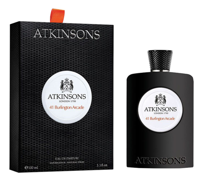 41 Burlington Arcade от Atkinsons аромат относится к группе древесные фужерные, создан в 2017 году. Состав парфюмерной композиций цветочные ноты, грейпфрут, цитрусные ноты, белый перецкардамон, мускатный орех, красный перец, лакричникмускус, ветивер, амбра, белый кедр, дым. Парфюмер создавший данную композицию