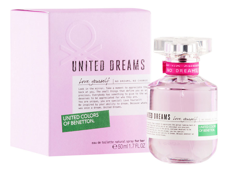 United Dreams Love Yourself от Benetton. Женский аромат - относится к группе цитрусовые фужерные, создан в 2014 году. Состав парфюмерной композиций бергамот, абрикос, грушажасмин, роза, фрезиямускус, амбра, сандал. Парфюмер создавший данную композицию