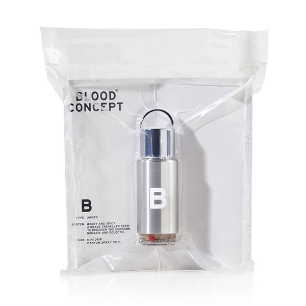 Perfume B (группа крови III) - древесно-пряный аромат с фруктовыми оттенками красного яблока и черной вишни в верхних нотах, артемизией, перцем, гранатом и черным чаем в сердце; пачули, ноами тикового дерева и металлическими нотами в основе.