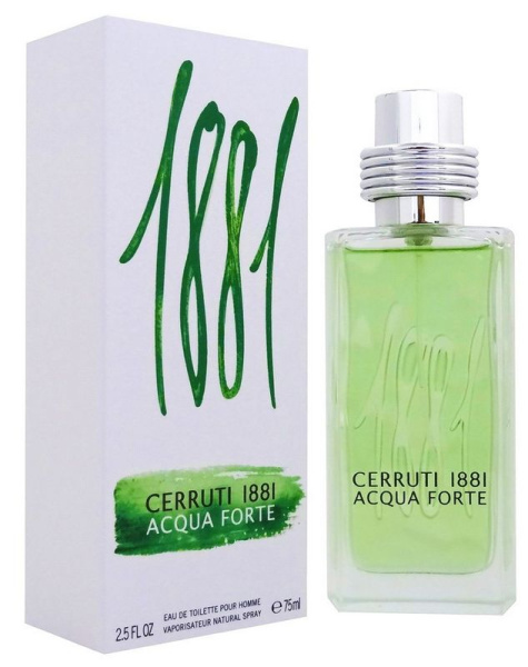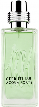Аромат 1881 Acqua Forte от Cerruti — это очень свежая, по-настоящему весенняя композиция с фужерным водяным характером. Новинка подойдёт для энергичных мужчин, которым нравятся более лёгкие запахи с оригинальным звучанием. Аромат является современной интерпретацией одеколона в его классическом понимании. С первыми секундами 1881 Acqua Forte раскрывается мотивами пряного кардамона и юзу (японского лимона). В сердце аромата — свежие листья базилика и уникальная молекула Calone, которая обеспечивает аромату приятные акватические оттенки. Шлейф парфюма состоит из аккордов кашемирового и розового дерева (палисандра).