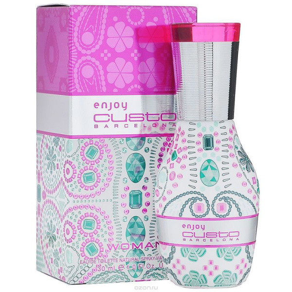 Превосходный аромат Enjoy Woman от Custo Barselona восхищает своими свежими тонами! Мне ее подруга на день рождения подарила и сейчас я как будто влюблена в этот парфюм! Запах цветов отлично сочетается с фруктовыми нотами в  Enjoy Woman и на долгое время остается на одежде. Скажу по секрету, что мужу тоже очень нравится этот аромат, и он не прочь каждый раз вздохнуть ее обнимая меня :)