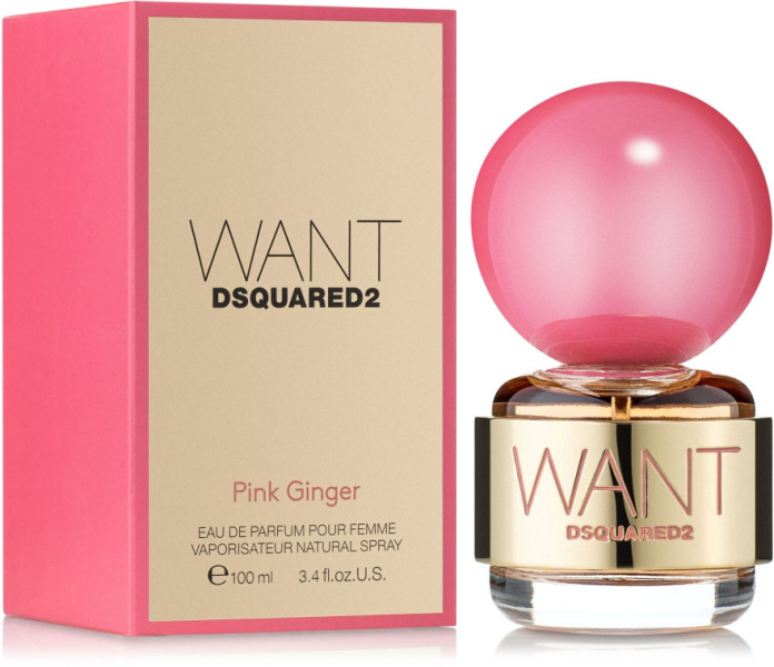 Want Pink Ginger от Dsquared2. Женский аромат - относится к группе восточные цветочные, создан в 2016 году. Состав парфюмерной композиций мандарин, имбирь, лимонгелиотроп, нероли, розовый перец, дамасская розадревесные ноты, янтарь, абсолют ванили. Парфюмер создавший данную композицию