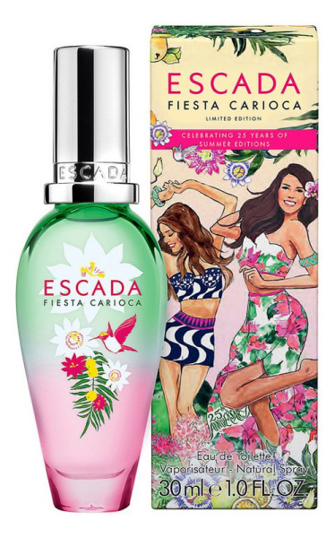 Fiesta Carioca от Escada. Женский аромат - относится к группе цветочные фруктовые, создан в 2017 году. Состав парфюмерной композиций лист фиалки, маракуйя, малинажасмин, апельсиновый цвет, страстоцветмускус, бензоин, белый кедр. Парфюмер создавший данную композицию