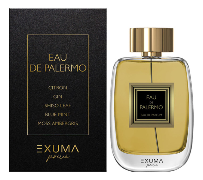 Eau de Palermo от Exuma Parfums аромат относится к группе цитрусовые фужерные, создан в 2019 году. Состав парфюмерной композиций розовый перец, черная смородина, апельсин, лимон, джинмята, петитгрейн, шисо, лаврмускус, амбра, мох. Парфюмер создавший данную композицию