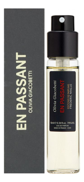 Frederic Malle - En Passant - свежий и безмятежный аромат - это очарование весеннего сада, где можно вдыхать терпкое благоухание кустов сирени, которую хлестает порывами ветра. Основа творения Оливии Джакобетти - незатейливый и естественный аромат белой сирени в окружении влажных, водянистых нот, зеленого аккорда листвы, бодрящей свежести огурца и горького аромата спелой пшеницы.