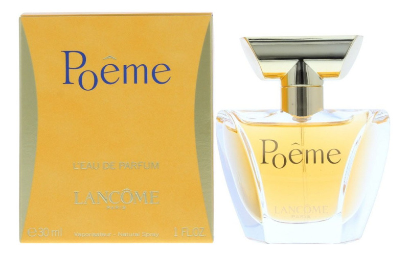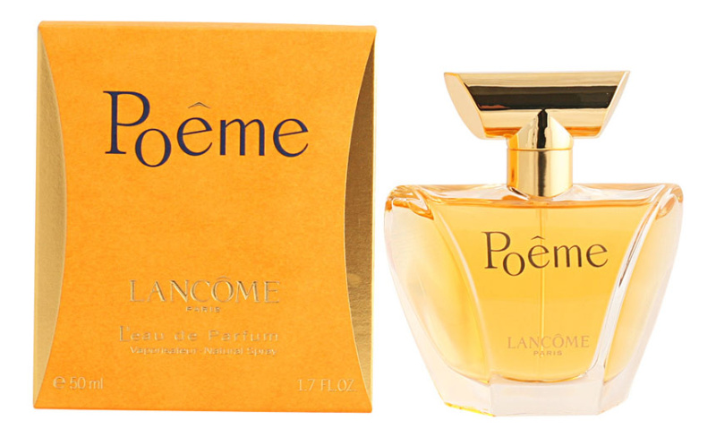 Lancome - Poeme - парфюмер Жак Каваль создал парфюм специально для романтичных творческих молодых женщин, современных, независимых и обладающих превосходным чувством стиля. Объединив, казалось бы, невозможное, ноты голубого мака с дурманом, ему удалось получить необычный аромат Lancome Poeme, невероятно душистый, пьянящий и, в то же время, ненавязчивый. Верхние ноты датуры, мака, нарцисса, сливы, бергамота, мандарина, персика и черной смородины плавно и незаметно перетекают в более насыщенные аккорды кожи, ванили, жасмина, туберозы, гелиотропа, розы, цветка апельсина, фрезии и иланг-иланга. Теплый шлейф окутывает обладательницу Poeme (Поэмы) ароматами бобов тонка, кедра, мускуса, цветка апельсина и амбры.