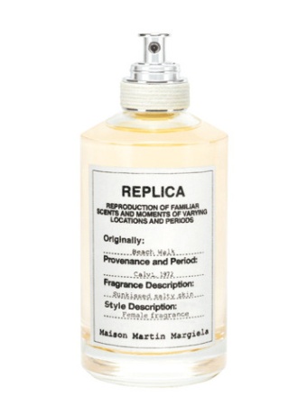 Дом Martin Margiela выпускает новую коллекцию ароматов под названием Replica, как дополнение к одноименной линии одежды. Парфюм - коллекция состоит из трех ароматов для женщин: Flower Market, Beach Walk и Funfair Evening. Каждый из них вызывает в воображении свой особый образ, на этикетку каждого помещено описание аромата, а на внешнюю коробку - фото- ассоциация.. Аромат, Beach Walk, сочетает в себе цитрусовые аккорды бергамота и лимона, розовый перец, иланг, кокосовое молоко, мускус и гелиотроп.