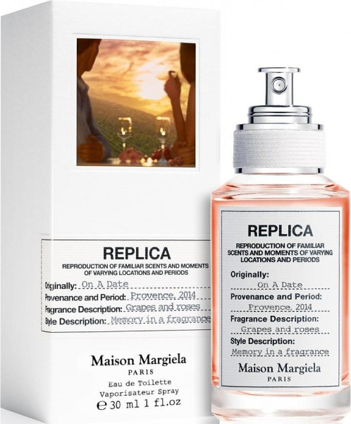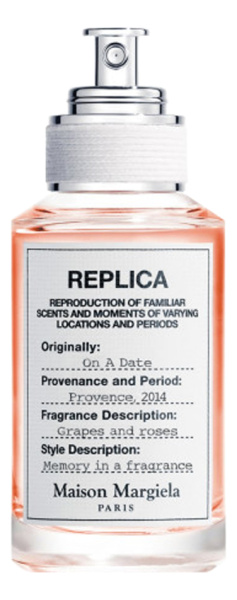 On A Date от Maison Martin Margiela аромат относится к группе цветочные фруктовые, создан в 2022 году. Состав парфюмерной композиций бергамот, розовый перец, черная смородинагерань, роза, даванамускус, ветивер, мох. Парфюмер создавший данную композицию