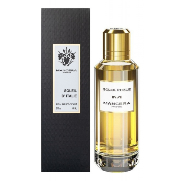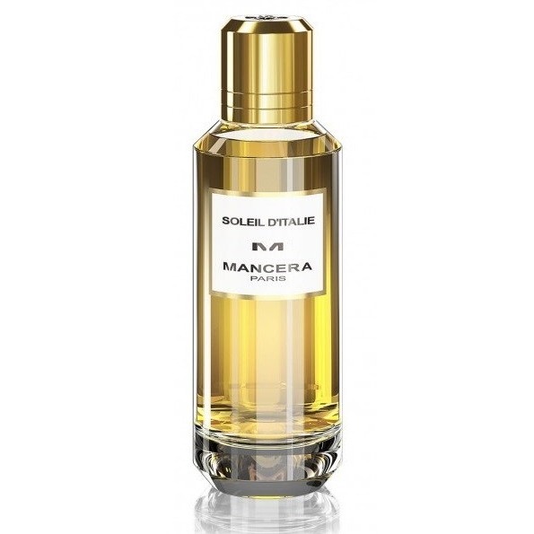 Soleil D'Italie от Mancera. Женский аромат - относится к группе цветочные древесно - мускусные, создан в 2019 году. Состав парфюмерной композиций бергамот, горький апельсин, мандарин, розовый перец, кардамон, лаймбелая роза, лист пачулидерево гуаяк, серая амбра, белый мускус. Парфюмер создавший данную композицию