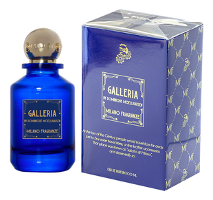 Galleria от Milano Fragranze аромат относится к группе древесные, создан в 2021 году. Состав парфюмерной композиций кофе, цитрусные ноты, давана, красные фруктыкорень ириса, кожа, апельсинамбра, пачули, сандал. Парфюмер создавший данную композицию
