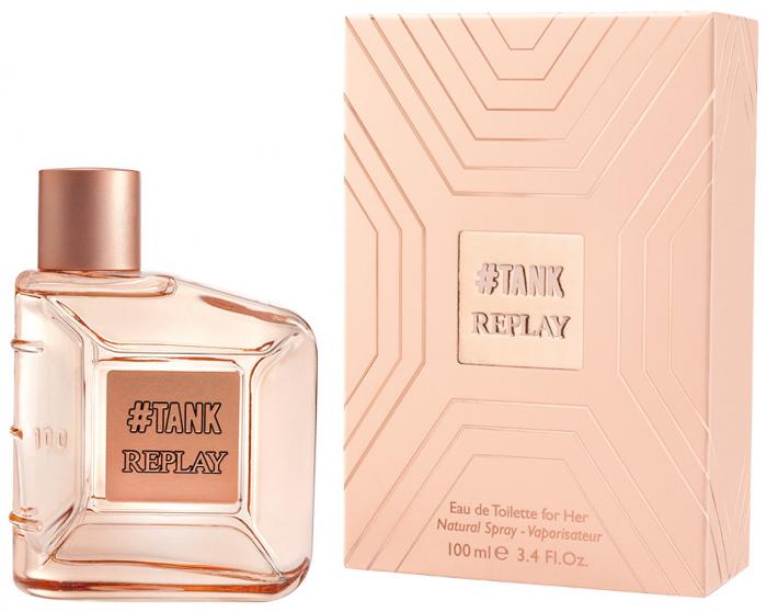 Tank For Her от Replay. Женский аромат - относится к группе цветочные фруктовые сладкие, создан в 2017 году. Состав парфюмерной композиций апельсин, яблокожасмин, тубероза, розамускус, ваниль, пралине, сандал. Парфюмер создавший данную композицию