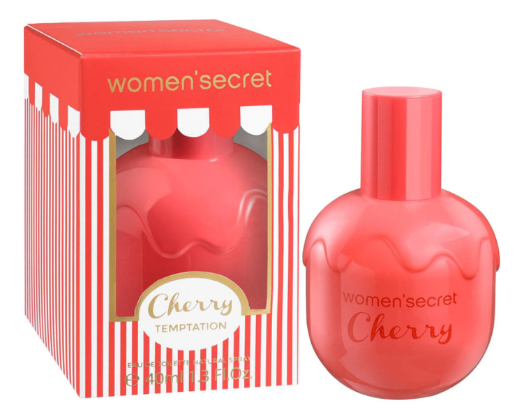 Cherry Temptation от Women Secret. Женский аромат - относится к группе фужерные фруктовые, создан в 2017 году. Состав парфюмерной композиций ананас, апельсин, лимон, яблококрасные ягоды, вишняроза, персик, сандал. Парфюмер создавший данную композицию